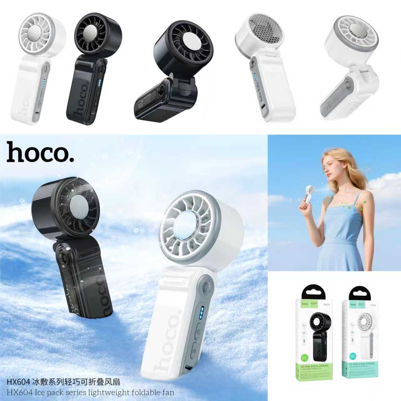 HOCO HX604 พัดลมมือถือ พับได้ Ice-Cool & Dual Cooling เย็นเร็ว น้ำหนักเบา ใช้งานได้ 3 โหมด พร้อมกล่อง บริการสกรีนโลโก้ฟรี