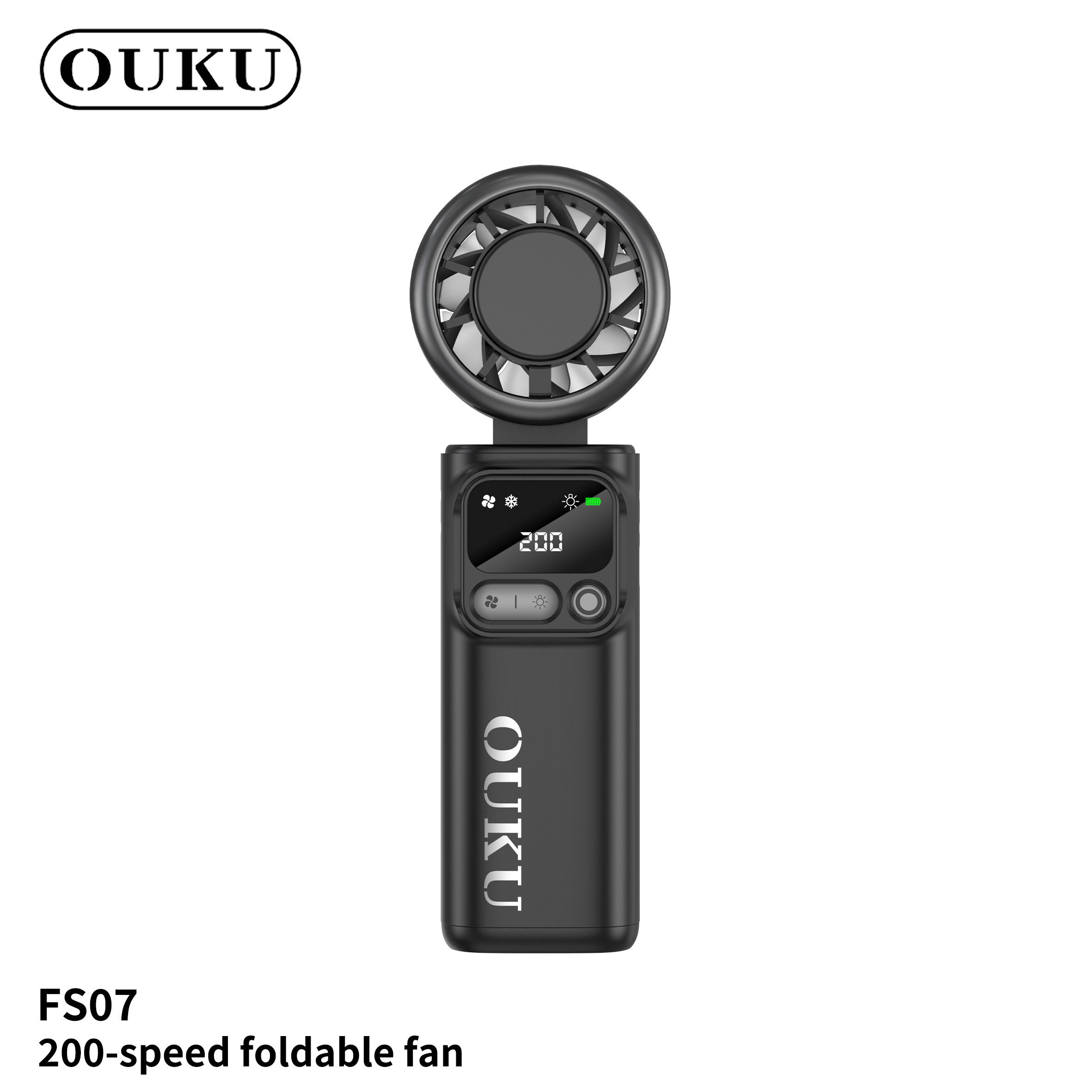 OUKU FS07 Plus MINI ลมแรง มีไฟฉาย+จอLED ใช้งานง่าย พัดลมมือถือ 4000mAh ปรับความแรงลมได้ 5 ระดับ จอแสดงผล LED น้ำหนักเบา แรงลมสูง พัดลมพกพา พร้อมกล่อง บริการสกรีนโลโก้ฟรี