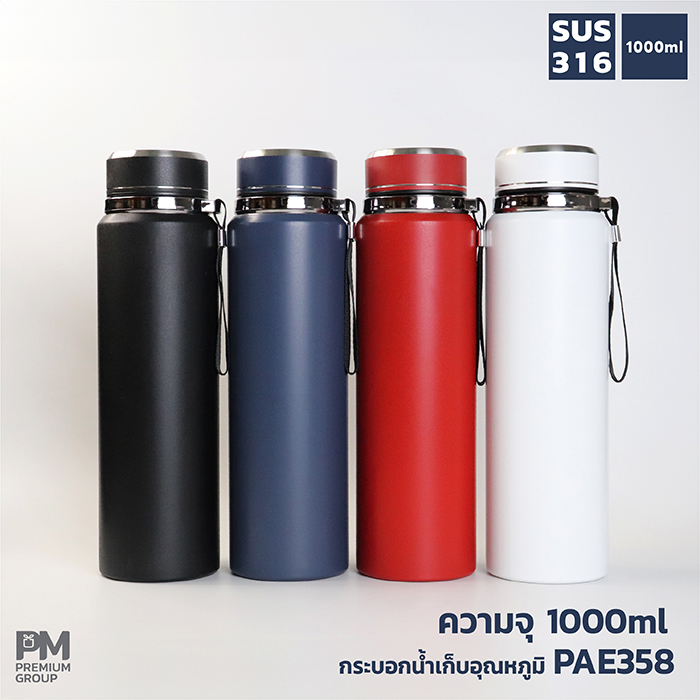 กระบอกน้ำสแตนเลสเก็บอุณหภูมิ 1,000 ml วัสดุภายในสเตนเลสเกรด 316 สามารถเก็บความเย็น นานถึง 24 ชั่วโมง บริการจัดทำอาร์ตเวิร์ค และสกรีนโลโก้ฟรี สินค้าพร้อมส่ง